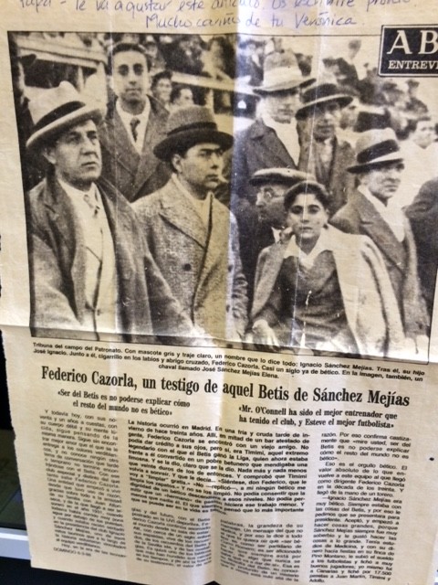 y su relato de cómo fue su entierro, al que por supuesto asistió. Cada vez que pasábamos por la Alameda de Hércules, camino del centro, me señalaba un chalet, que daba señales de decadencia, “mira, ahí vivía Joselito”. Según los expertos Joselito fue el torero más grande de todos los tiempos. Joselito murió en el año 1920. Mi padre tenía entonces 24 años.Poco después de la muerte de Joselito a mi padre le dio por otra pasión:el fútbol. Quizás aquello vino antes. Lo cierto es que, quizás influenciado por algunos de sus amigos, muy particularmente mi padrino de bautismo Juan Alfonseca Caro, mi padre se hizo socio del Real Betis, en plena monarquía.
